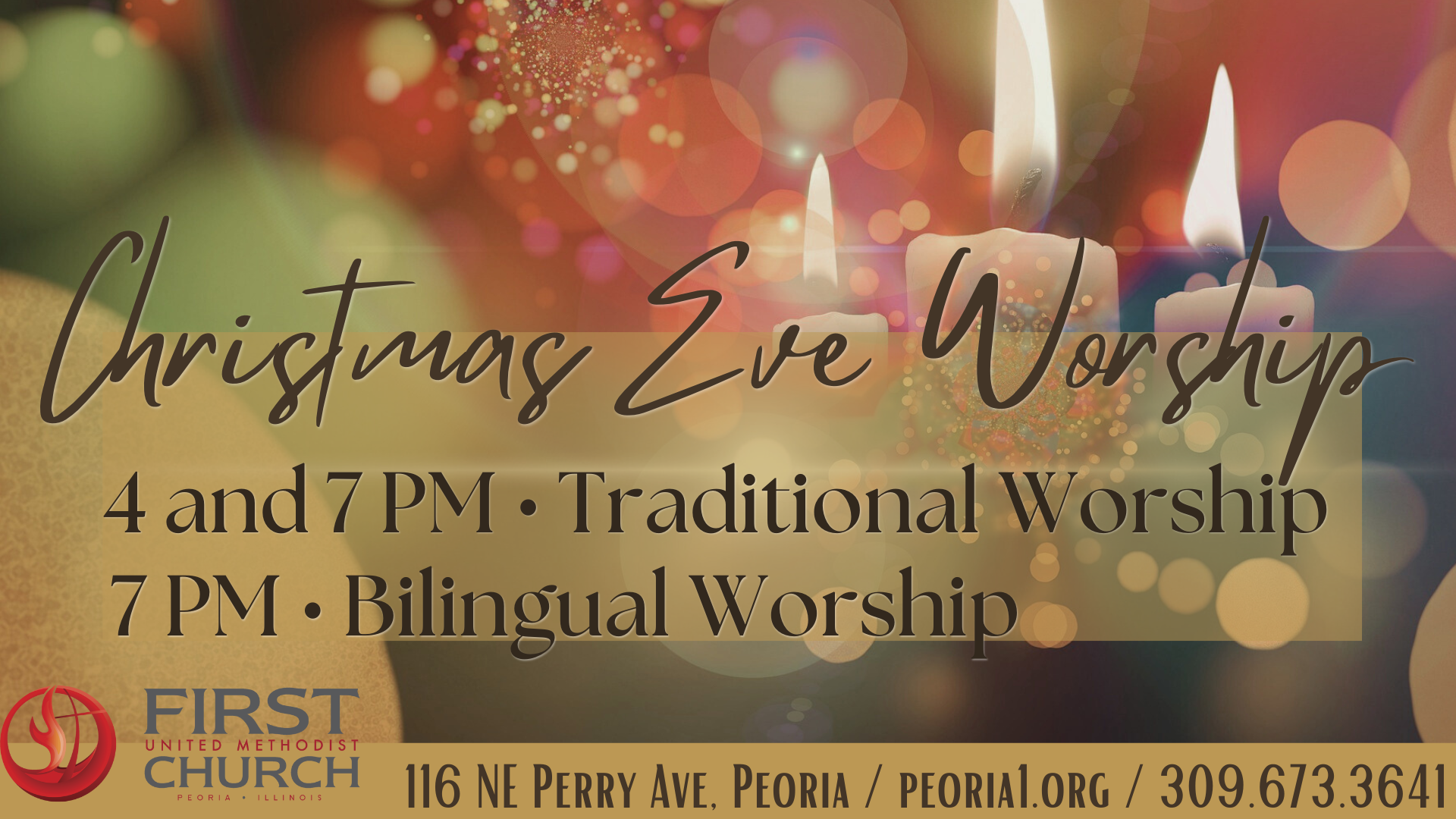 - First United Methodist Church of Peoria, 116 Perry Ave., Peoria, will hold special Christmas Eve worship at 4 and 7 p.m. Tuesday. The 4 p.m. service will be traditional; the 7 p.m. service will be bilingual.